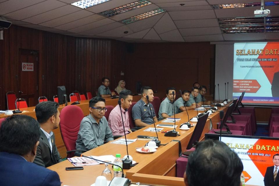 Pegawai Daerah Segamat, Tuan Haji Nasri Bin Md Ali telah membuat sesi lawatan kerja ke Daerah Kecil Labis.Turut hadir Yang Dipertua Majlis Daerah Labis, En Rudy Rizal Bin Mohd Hanapi serta Penolong Pentadbir Tanah Daerah Kecil Labis,Tuan Hj Muhd Syahrizat Bin Alwee pada hari Rabu, 3 September 2019.